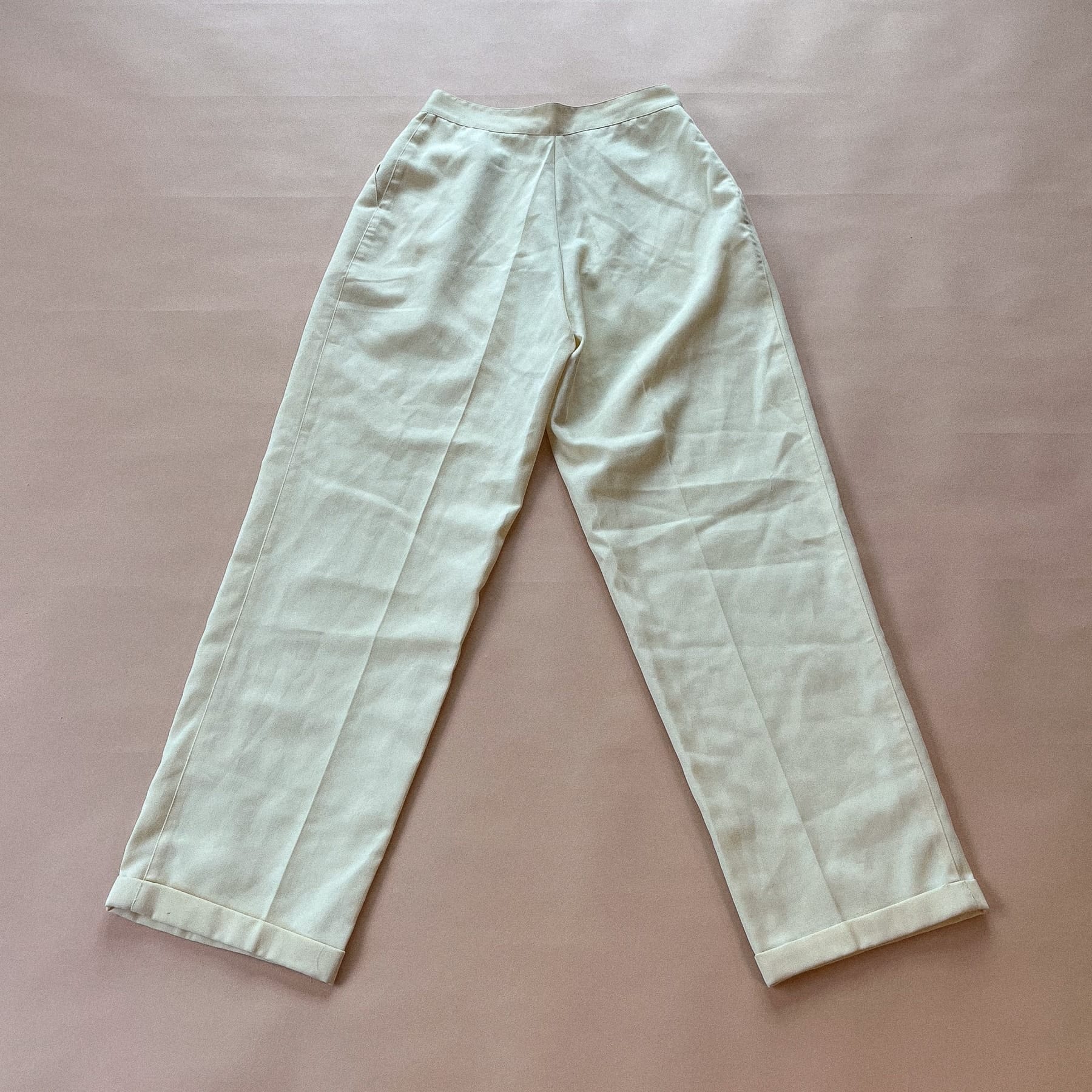 BUX-ON lysegule elegante bukser med vidde i ben. Lukkes foran med lynlås, knap og et overstykke der gør lukning usynlig. Falder smukt og elegant og giver lange ben.